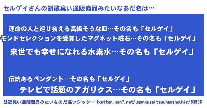 | 意味不明あだ名 | 『永久保存セルゲイ』『自称セルゲイ』 |