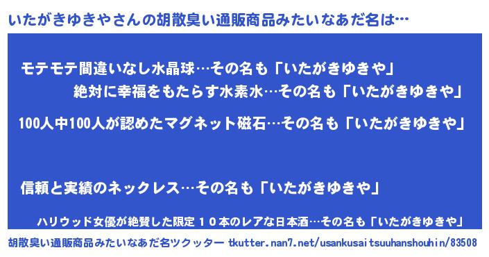 | ヘコむあだ名 | 『いたにー』『いたがきゆきや(爆)』 |