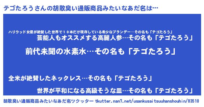| 意味不明あだ名 | 『永久保存テゴたろう』『自称テゴたろう』 |