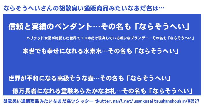 | 意味不明あだ名 | 『永久保存ならそうへい』 |
