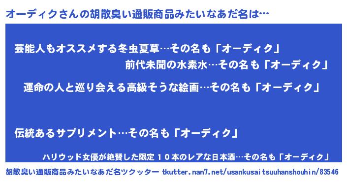 | ヘコむあだ名 | 『酢こんぶ』『オーディク(遠い目)』 |
