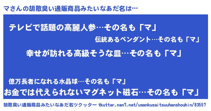| ヘコむあだ名 | 『つくし』『マ太郎』『マにー』 |