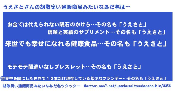 | 伝説のあだ名 | 『古より伝わる暗殺者うえさと』 |