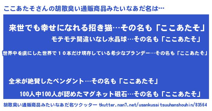 | 欧米人風あだ名 | 『ダレノガレここあたそ』 |