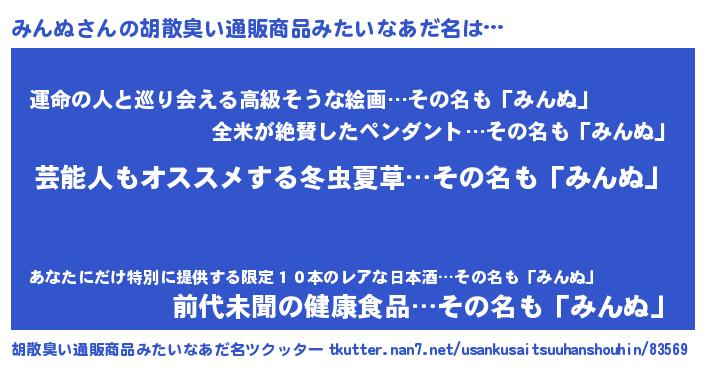| 男性向けラノベタイトル風あだ名 | 『Re:みんぬから始める異世界生活』 |