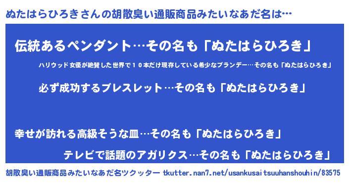 | ヒーロー風カッコイイあだ名 | 『スーパーヌタハラヒロキ』 |