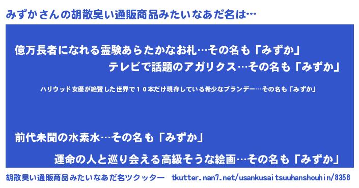 | 恥ずかしいあだ名 | 『プリティーみずか』『みずっちょ』 |