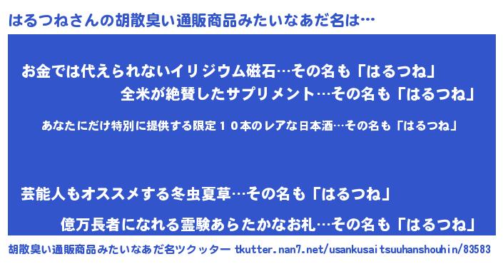 | ヒーロー風カッコイイあだ名 | 『仮面ハルダー』『愛の使者はるつね』 |
