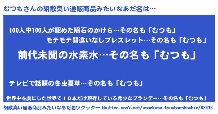 | 意味不明あだ名 | 『永久保存むつも』『めかぶ科むつも属』 |