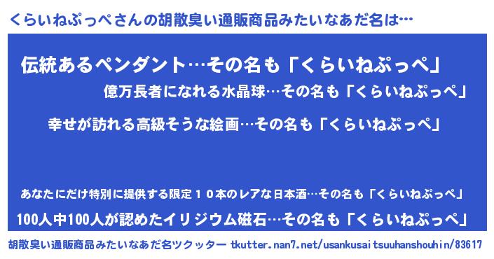 | 意味不明あだ名 | 『くらいねぷっぺフォーエバー』 |