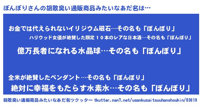 | 意味不明あだ名 | 『ペロリンぼんぼり』『永久保存ぼんぼり』 |