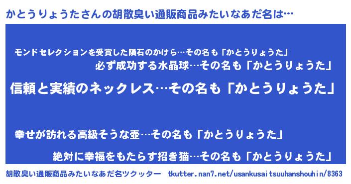 | ヘコむあだ名 | 『かとっ子』『かとうりょうた(苦笑)』 |