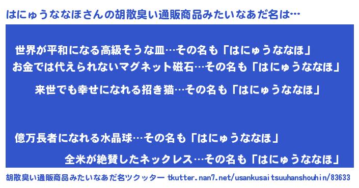 | 意味不明あだ名 | 『永久保存はにゅうななほ』 |