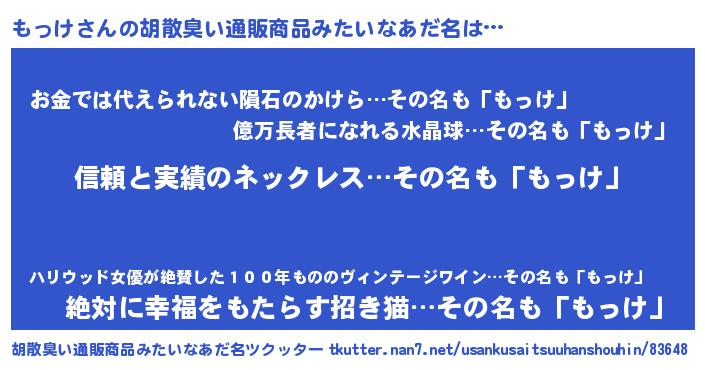 | ヒーロー風カッコイイあだ名 | 『暗黒騎士モッ』『慈愛の使者もっけ』 |