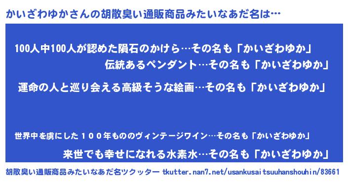 | 意味不明あだ名 | 『かいざわゆかフォーエバー』 |