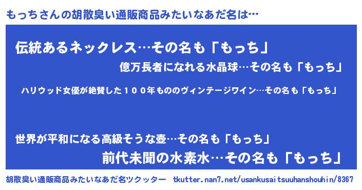 | 意味不明あだ名 | 『住所不定無職もっち(8歳)』 |