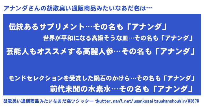 | 意味不明あだ名 | 『自称アナンダ』『永久保存アナンダ』 |