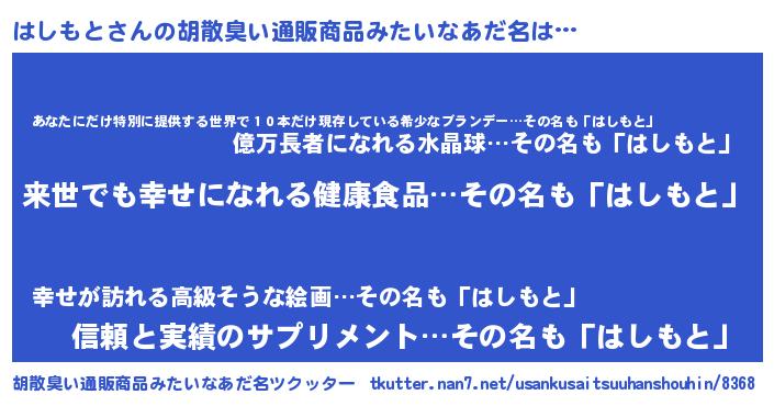 | ヘコむあだ名 | 『はしもと(爆)』『はしっぺ』『牛乳』 |