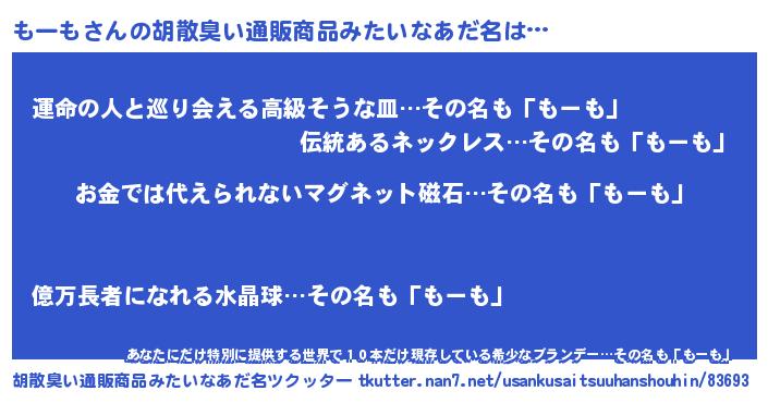 | ヘコむあだ名 | 『豆乳』『もーっちょ』『もーも(笑)』 |