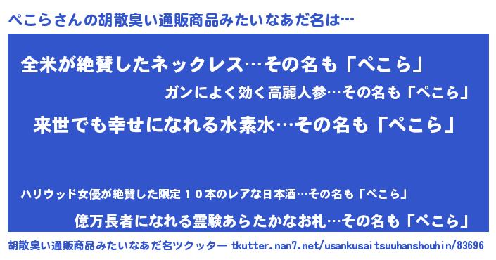 | 意味不明あだ名 | 『永久保存ぺこら』『ペロリンぺこら』 |
