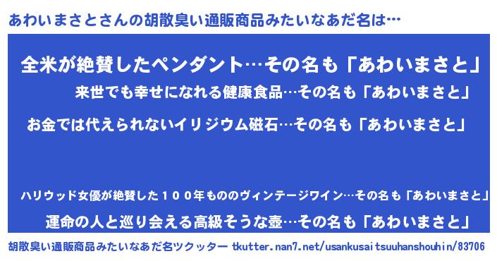 | ヘコむあだ名 | 『あわ太郎』『酢こんぶ』『あわもー』 |