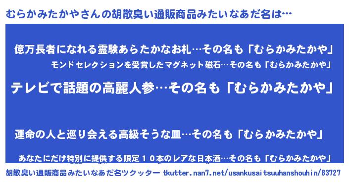 | 意味不明あだ名 | 『自称むらかみたかや』 |