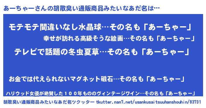 | 意味不明あだ名 | 『自称あーちゃー』『ペロリンあーちゃー』 |