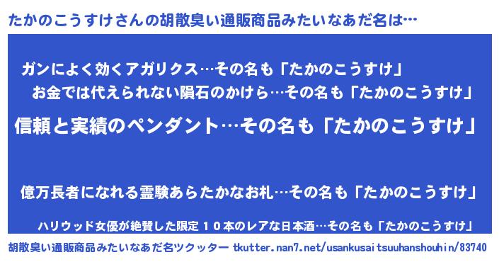 | 伝説のあだ名 | 『孤高の遊び人たかのこうすけ』 |