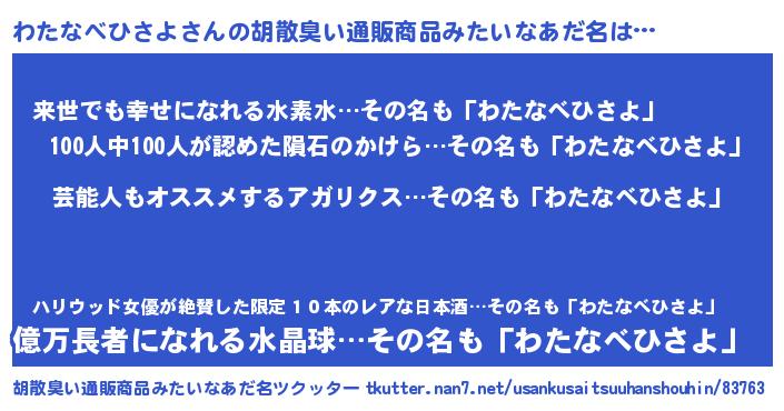 | 意味不明あだ名 | 『自称わたなべひさよ』 |