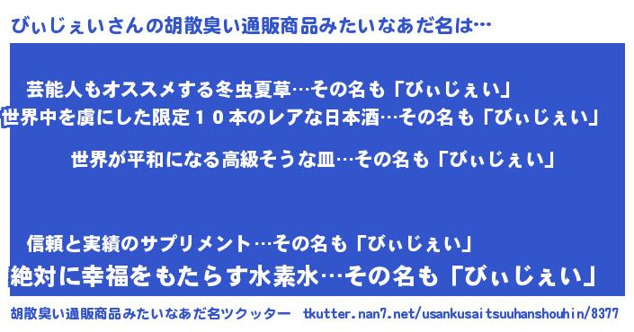 | ヘコむあだ名 | 『なまこ酢』『びぃじぇい(笑)』 |