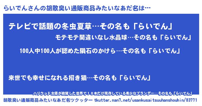 | ヘコむあだ名 | 『らいもー』『らいでん(爆)』 |