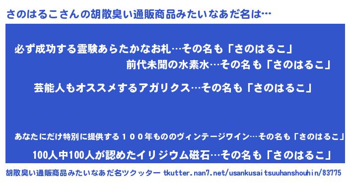 | 男性向けラノベタイトル風あだ名 | 『Re:さのはるこから始める異世界生活』 |