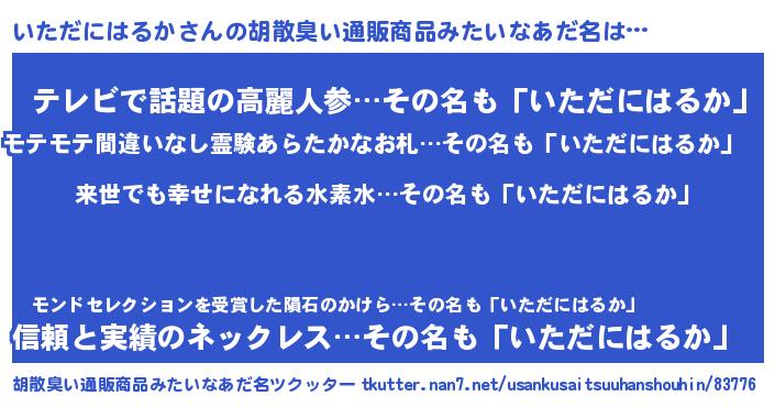 | ヘコむあだ名 | 『いただにはるか(震え声)』『いたを』 |