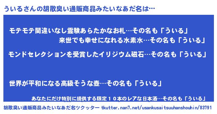 | ヘコむあだ名 | 『ういにゅー』『ういる(笑)』 |