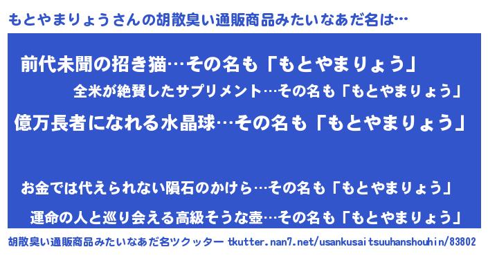 | ヘコむあだ名 | 『もとにゅー』『もとやまりょう(小並感)』 |