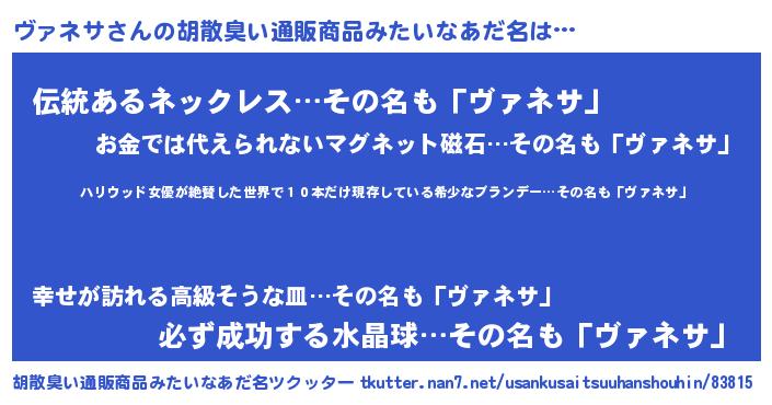 | 料理風あだ名 | 『ヴァネサのカルパッチョ風』 |