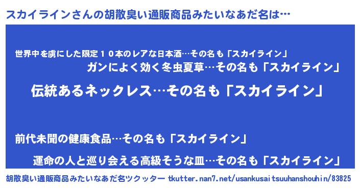 | 意味不明あだ名 | 『とにかく怪しいスカイライン』 |