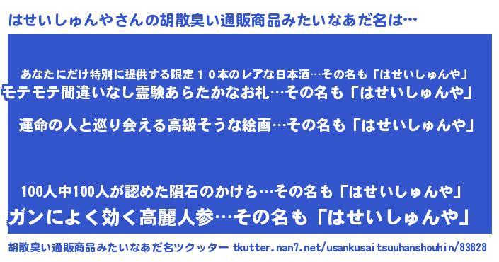 はせいしゅんやさんの胡散臭い通販商品みたいなあだ名をツクッター!