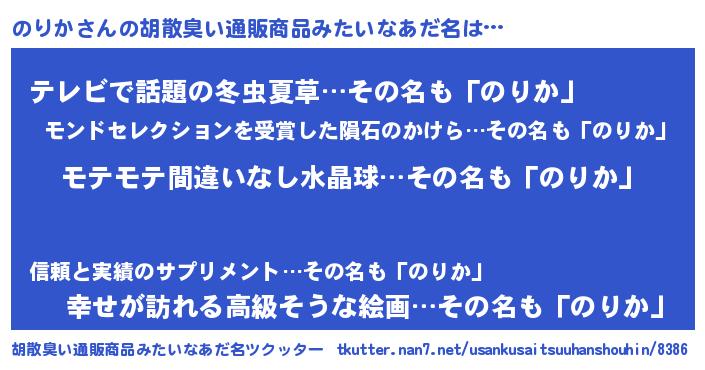 | 恥ずかしいあだ名 | 『プリティーのりか』『ノリカデラックス』 |