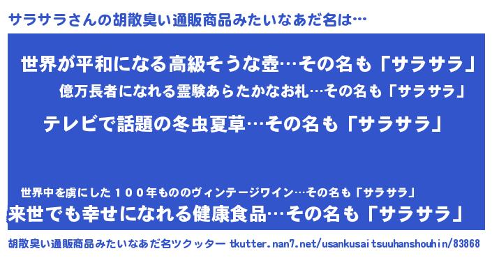 | 意味不明あだ名 | 『自称サラサラ』『サラサラフォーエバー』 |