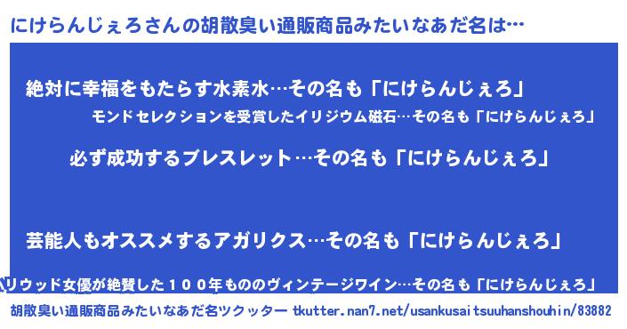 | ヘコむあだ名 | 『にけにー』『にけらんじぇろ(小並感)』 |