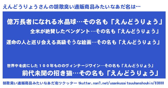 | 意味不明あだ名 | 『えんどうりょうフォーエバー』 |