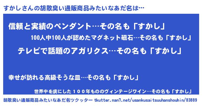 | 意味不明あだ名 | 『自称すかし』『とにかく怪しいすかし』 |