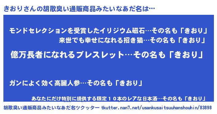 | ヘコむあだ名 | 『きおふぇ~』『きおり(小並感)』 |