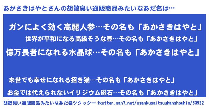 | 意味不明あだ名 | 『ペロリンあかさきはやと』 |