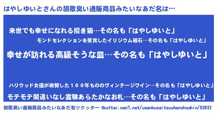 | ファンタジー風あだ名 | 『エターナルハヤシユイトー』 |