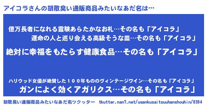 | ヘコむあだ名 | 『アイコラ(笑)』『アイっふぃ~』 |