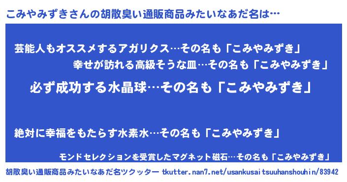 | 肩書あだ名 | 『こみやみずきCEO』『こみやみずき総統』 |