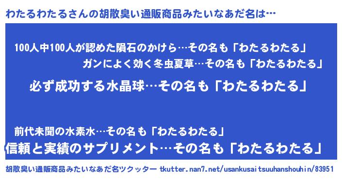 | 男性向けラノベタイトル風あだ名 | 『ワタルワタルスレイヤー』 |