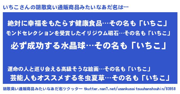 | 意味不明あだ名 | 『ペロリンいちこ』『永久保存いちこ』 |